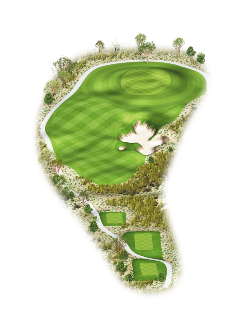- Flat, arid landscape turned into a strategic gem: broad, angular holes with crowned greens and close-cropped run-up areas.